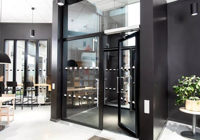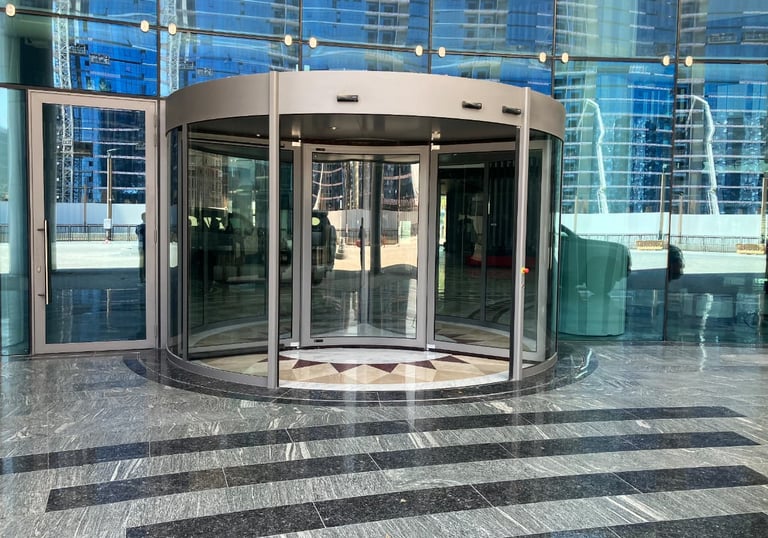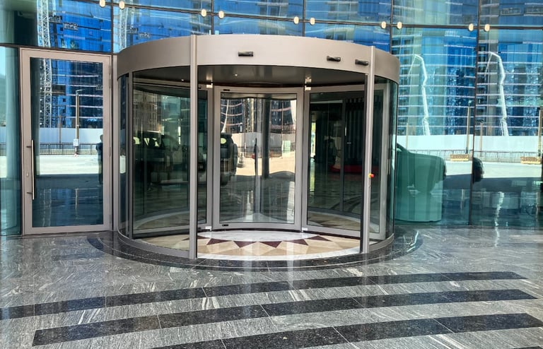 Installation and servicing of revolving door systems designed for high-end commercial buildings and premium entrances.Energy-saving air control,High-capacity traffic flow,Elegant architectural design,Integrated safety systems.